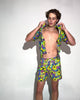 drip yourself out in full-on psychedelic chaos with this ultra-vibrant Welcome to Trippyland Camp Shorts. covered in our most-loved trippyland smileys and melting mushroom graphics, it’s the kind of piece that makes people do a double take (or three). featuring our best-selling shorts with breathable flowy fabric and a UV-reactive print.