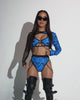 Cyber rave energy meets bold attitude. The Rolita Couture x iHeartRaves Digital Hex Ultra Crop Top is designed to stand out with its hypnotic blue digital hex print and edgy cutout silhouette. The ultra-cropped fit pairs with a statement buckle piece and mesh sleeves for a layered look that feels both futuristic and rebellious.