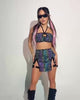 Fit so bright you can light the night! Our iconic happy hour print just got an upgrade in this rainbow reflective cutout top style. Featuring supportive coverage and an adjustable halter tie, your next IG post is going to slayyyy in this fit. Pair with the Happy Hour Rainbow Reflective Cutout Skirt to complete the look.