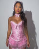 Channel your inner Bender Barbie with this cute corset top! This baby pink ensemble is features a delicate lace-like pattern, a flattering sweetheart neckline, a fit that cinches you in, and soft ruffles at the hem for that flirty, playful touch.