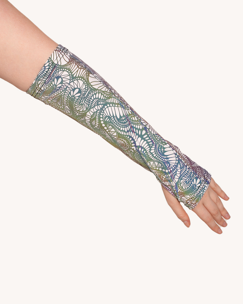 Charge up and electrify the night in the Pure Euphoria White Rainbow Reflective Hood & Sleeve Set! Complete your rainbow reflective look with these accessories, and you're ready to move and look like a lightning strike—unpredictable, unstoppable, and impossible to ignore.