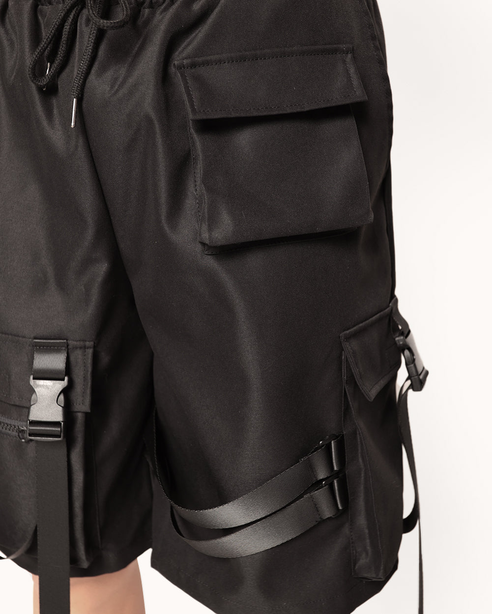 Unleash the feral energy! The RIP My Neck Shorts boast an all-black edgy design and strappy accents that scream chaos. These men's rave bottoms are for those who live for the weekend bender.