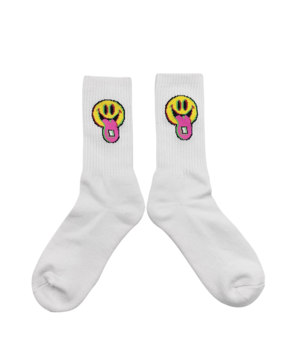Wear the Happy Hour Acid Smiley Socks and instantly feel the night come alive! They're ur ultimate rave companions, keeping ur feet comfy and ur style on point as u dance the night away.