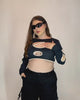Our Backstage Baddie Reflective Cutout Top will have them wishing they were u. This cami top has a body-hugging fit, cropped cut, reflective straps, and a keyhole accent.