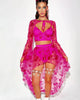 Welcome a world of sparkle and enchantment with the Glimmer in the Garden Tie-Front Ultra Crop Top! This radiant top features vibrant pink mesh, twinkling sequin florals, and flowy bell sleeves that bring a touch of magic to your look.